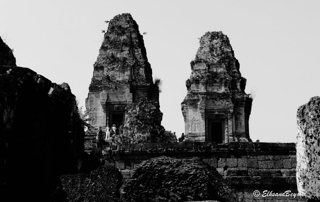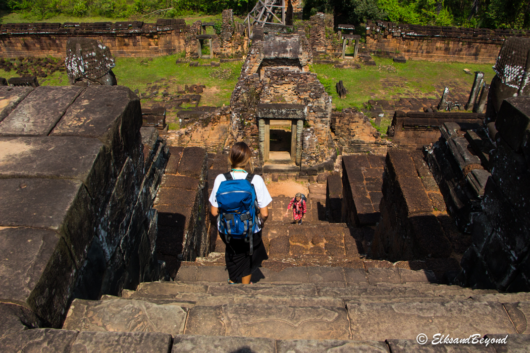 The stairs on all of these temples are all incredibly steep. Elisabeth dropping down off of the top of Pre Rup.