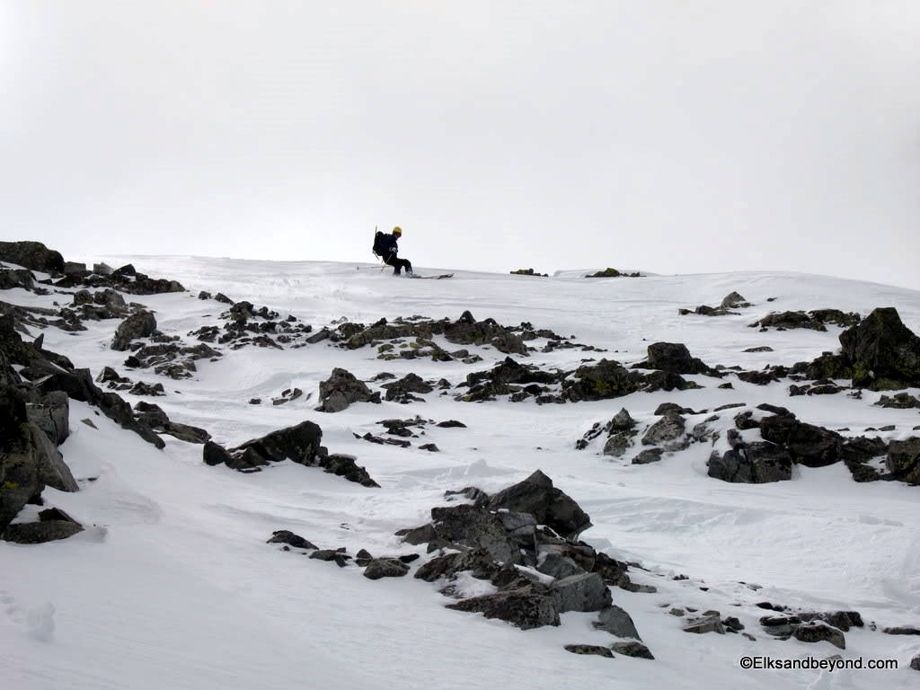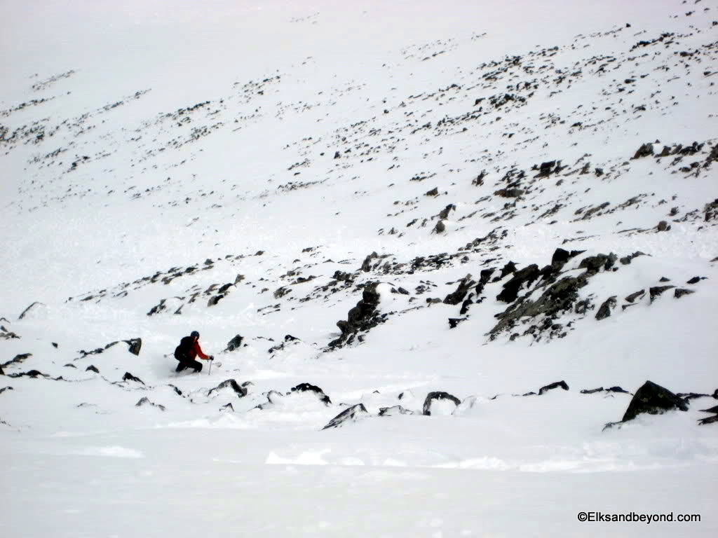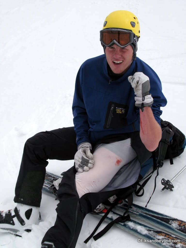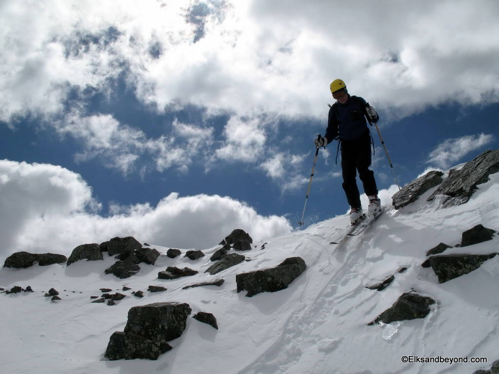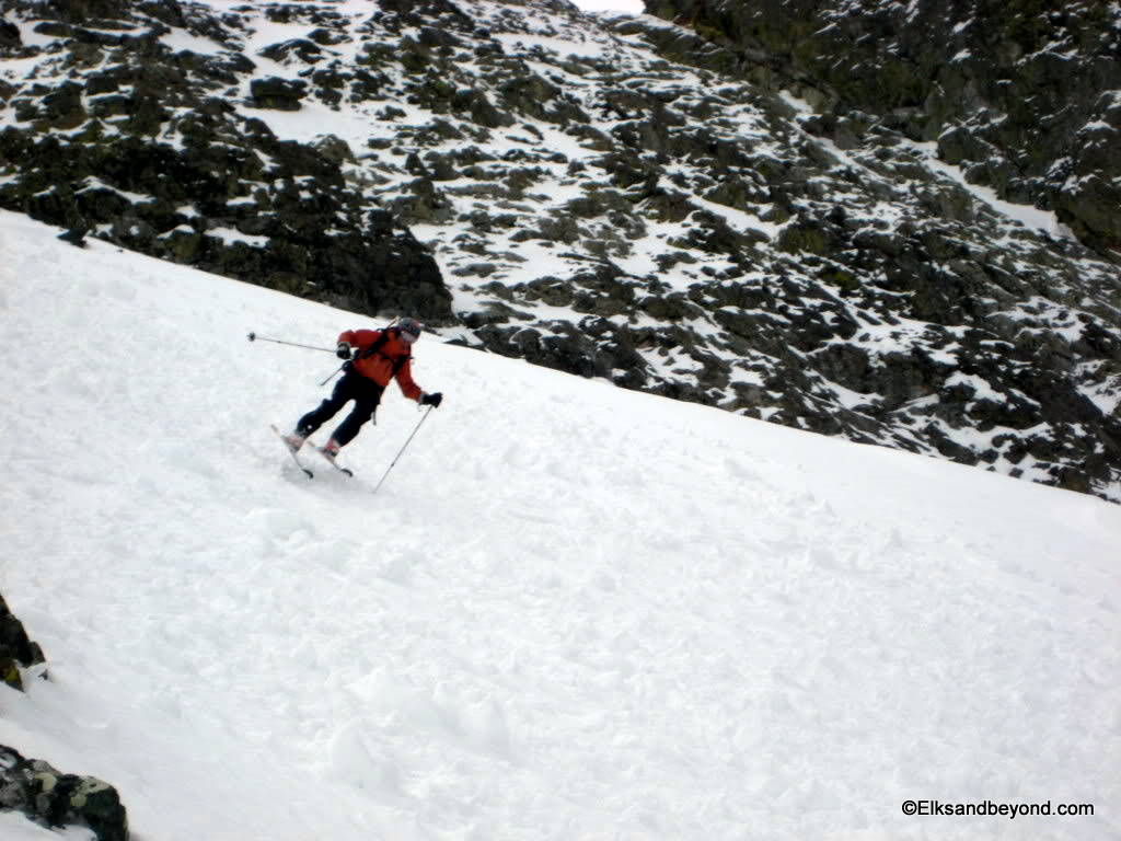 The snow on Ellingwood was noisy to say the least. It was still frozen from the night before, but made for safe skiing. The snow down Blanca was extremely hard skiing with breakable crust most places with a very soft layer underneath that offered little support. As i did a jump turn in one spot the snow below me all gave way and i started to slide over a couple rockbands. We decided it was worth a picture once we got down.