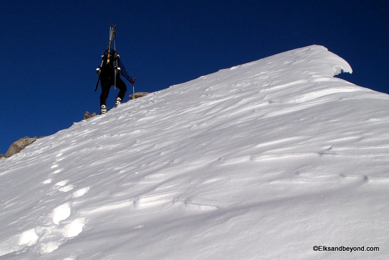 After reaching the ridge and taking a look down this scary looking chute we reached the summit around 6:45 am.
