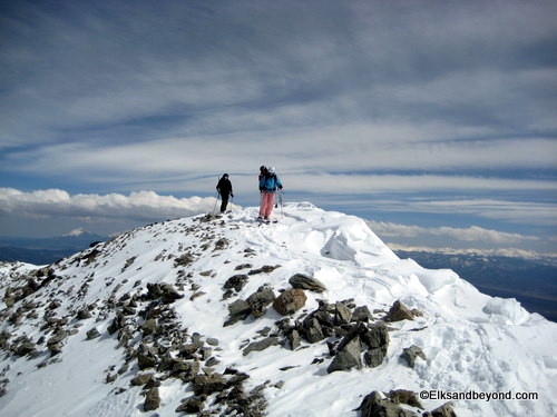 Frank and myself were the only ones along who had climbed this mountain previously, and neither one of us remembered the false summit as it has been over 12 years since either of us have been there. Anyway after a quick 15 minute jaunt across and up, we found ourselves…finally on the summit of Lindsey.