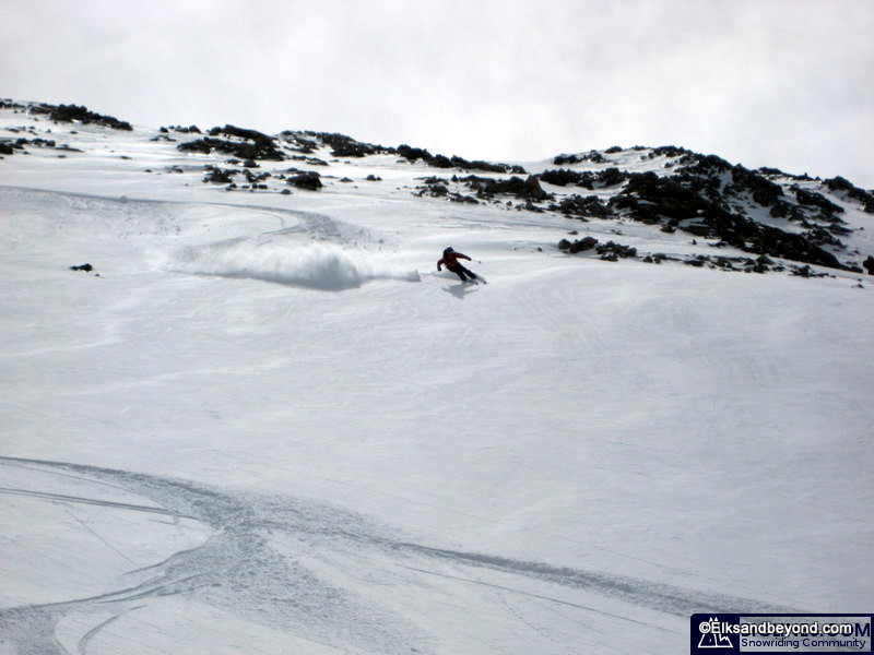 Well after everyone topped out on what was still a sunny day, the weather decided to get windy on us, and so we were ready to get down and do some skiing.
