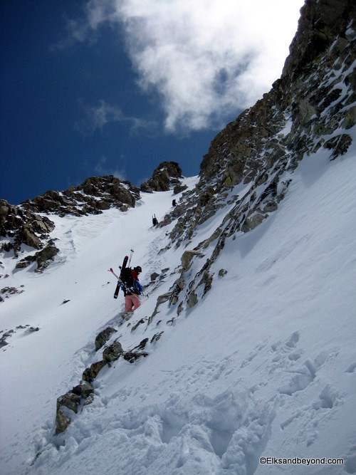 From here we traversed the ridge and then skied about 200 vertical down the get to the base of where we decided to start climbing.