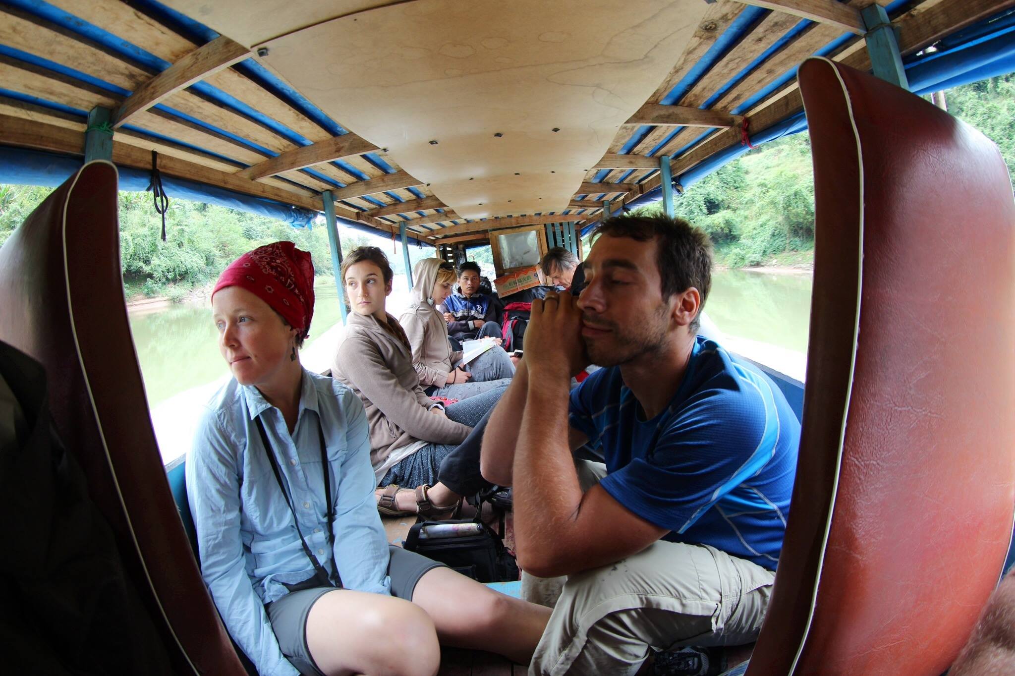 Once we got back we decided that we wanted to try our luck to get on the local bus, you couldn’t make reservations for it, to Luang Prabang. The French couple from our boat the day before, Benjamin and Elise, were also trying to catch the same bus. While we were waiting, Nicole approached us about chartering a boat to take us as far down the river as we could go, the Chinese are building a dam, and then taking a van the rest of the way to Luang Prabang the next day. The bus was supposed to show up between 5:00-8:00, and 8:00 was the deadline to charter the boat through Green Discovery for the next day. As 8:00 came closer, the bus arrived- with 2 seats available. We almost took it, but then we decided to wait it out and stay the night in Nong Kihaw, again. I really did love it there, and wasn’t quite ready to leave, but the knowledge that Luang Prabang shuts down at 11:30 and the fact that we had no reservation at a place to stay there made us think it was probably better just to head there the next day. The boat cost about 160,000 kip ($20) a person, which was quite a bit more expensive than the bus, but we thought it would be way more enjoyable than being shoved into a bus.