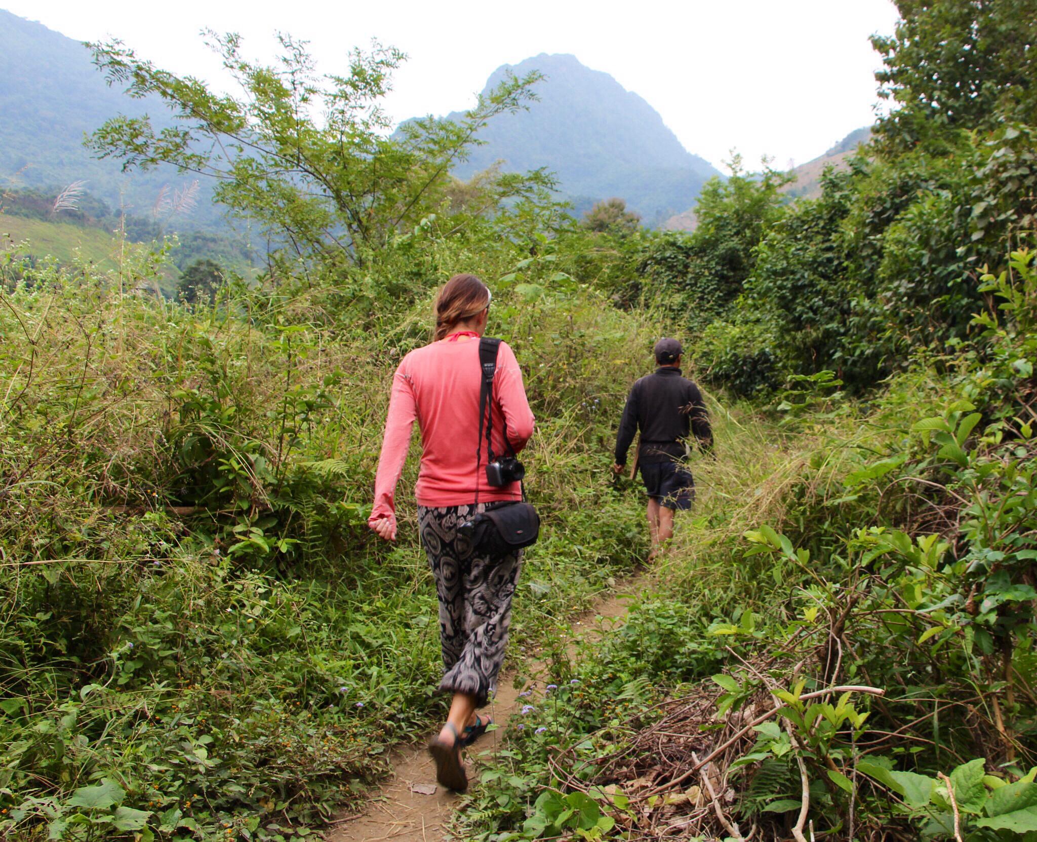 Our guides took us back through the rice fields and they asked us for 10,000 kip, which was to be expected, but we didn’t have enough small change so we paid them a little extra and asked them to take us to their village and show us where they lived.