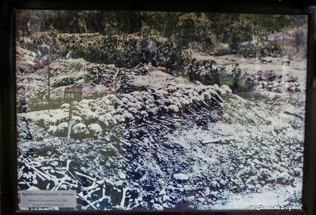 Back to the killing fields. The current ones outside of Phnom Penh are just one location of many where this sort of genocide took place. As we enter the walking tour the now peaceful green fields with previously excavated graves give way to images of massive graves of bones and clothing remains from mass executions. Another stop along the way brings us to so called “killing tree,” whose sole use was to kill infants and toddlers by beating them against it rather than waste a bullet. Everywhere you walk there is another sight where another massive grave has since been excavated and turned into a memorial. As we arrive at the end of the tour there is a large tower that houses thousands and thousands of the human skulls that have been recovered from the sites. A truly somber experience.