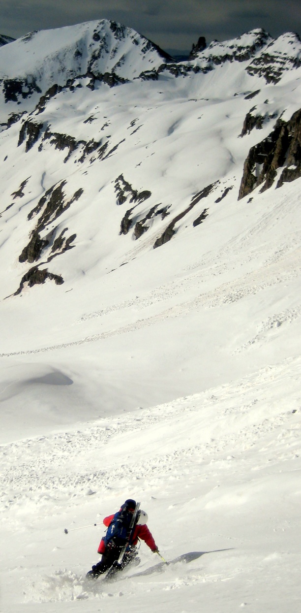 We were all skeptical as to whether or not the line even had a chance of going all the way down, but my general attitude in the mountains is almost always “a day in the mountains is better than a day spent almost anywhere else.” Yesterday was no different. It was a gorgeous morning. The snow above about 12,500 had a few inches of white covering our dust layer, and I got to share the day with a group of great friends.