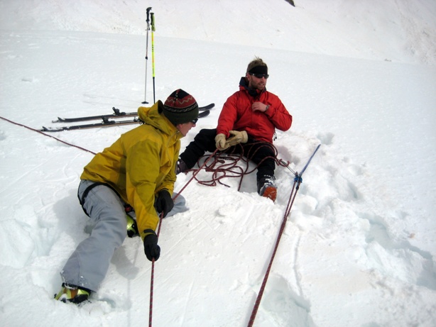 We regrouped down on the top of a small headwall of snow and decided it would be a good place to set up a z-pulley.